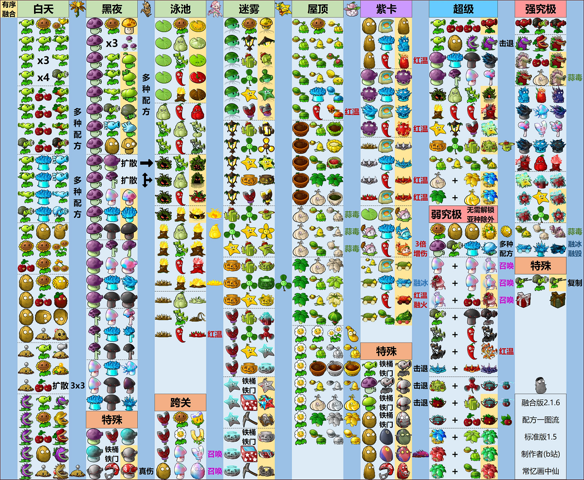 普通植物:寒冰路灯花、海蘑菇地雷、海蘑菇水雷、毁灭路灯花、卷心菜迫击炮、西瓜窝窝投手、樱桃窝瓜、毁灭窝瓜、黄油黏黏菇、特种三线射手、阳光三叶草、大喷南瓜、小蘑菇南瓜、阳光窝瓜、西瓜南瓜、土豆窝瓜(块茎)、毁灭大蒜、杨桃大蘑菇、胆小花盆