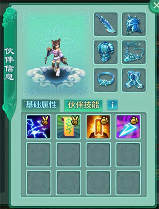 伙伴简介:古灵精怪的猫女掌控雷电之力,擅长使用雷系法术攻击敌人,可封印敌人技能,但伤害一般。