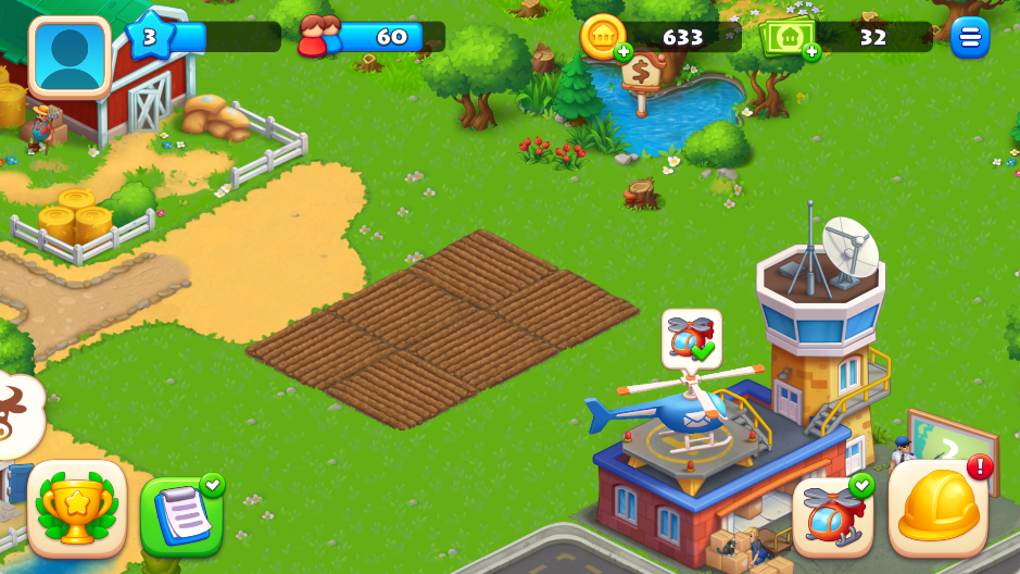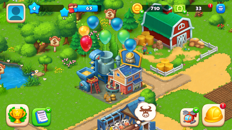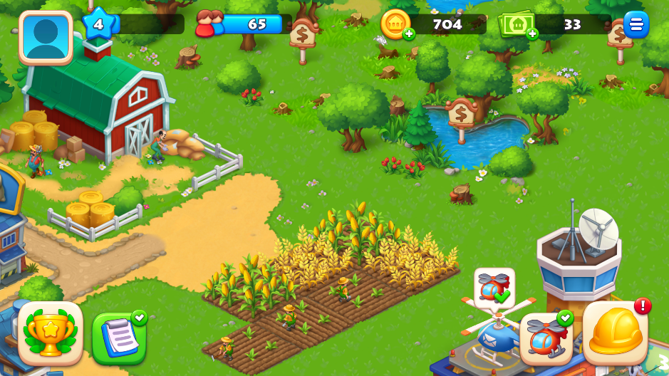 Township(梦想城镇)是一款农场模拟经营手游。在这里,你不仅可以扮演小镇的镇长,规划建设居民区、商业设施与娱乐空间,还能亲手经营农场,感受从耕作到收获再到加工销售的完整经济循环。Township提供了丰富的作物种类,你可以种植小麦、玉米、蔬菜等农作物,并将收获的作物送入工厂进行加工,例如制作面包、奶酪等产品,再通过市场出售获取收益。赚取到的收益建设居民住宅、餐厅、电影院、商店等社区建筑,增加小镇人口,提高居民满意度。随着小镇的不断发展,后期还可解锁矿井,探索矿井获取能源和古董,让小镇发育更稳健。