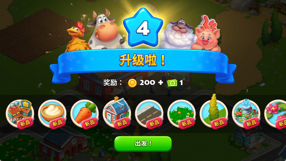 升级策略:多种植作物和养殖动物,可加快金币积累和升级速度。