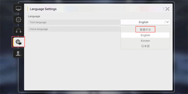 2、点击下方第四个语言栏,在Text language中选择繁体中文即可。