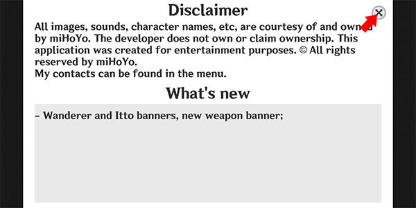 1、在本站下载并打开wish impact,等待右上角条款读秒后点击“X”键