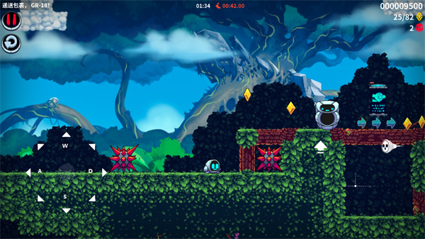 崩溃制造中文版是一款采用2D风格打造的像素冒险闯关类游戏,表面上清新欢快,实际上虐身虐心让你恨不得想摔手机。游戏内我们将作为一名崩溃制造部的新员工,负责针对每种可能的快递情况,从而对我们自己的GR-18交付机器人进行各种各样的训练。简单来讲就是我们将要以机器人的视角去经历一系列的冒险闯关,从而让自己变得更强。而崩溃制造这款游戏玩起来其实也不难,玩法个人感觉类似于马里奥。在每个关卡内都有着超多的怪、金币以及存储点,我们所要做的就是操纵着手里的机器人成功从起始点闯到终点,而面对途中的怪我们可以跟马里奥一样去踩它,从而消灭它。当然啦,有些怪比较大踩不了,这时候就得用到关卡内的道具将其推下悬崖了。此外,除却极具操作性的玩法以外,崩溃制造为了提高玩家的可玩性,它特地内置了90多个赋予挑战性的手工设计关卡,不同的关卡有着不同的内容,比如有的在寺庙、有的在车上、有的在石窟、地库、峡谷、熔炉......简而言之,不同的关卡可带你体验全新且不重复的冒险感受。