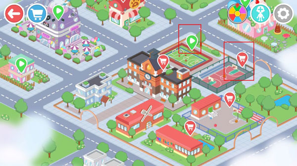 2、进入游戏后,绿色图标处是可免费体验的地点,红色图标是还未解锁的地点