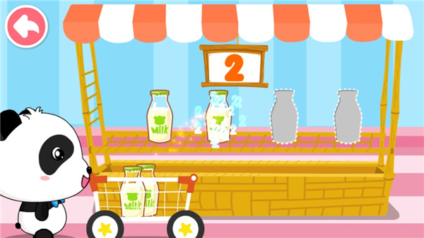 6、奶牛完成挤奶以后,小熊猫会把牛奶推到集市上去售卖,这也是为了让小朋友们增加对数字的印象;