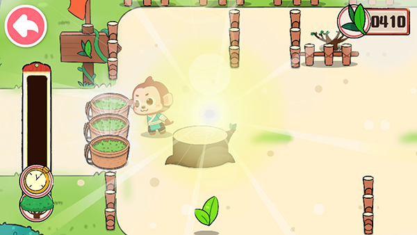 背着小箩筐采茶叶去咯。迷雾挡住去路怎么办?不怕!收集茶园里的奇妙桃子,可以获得“神力”,扫清道路障碍;吃掉神奇香蕉,还能在迷雾中看得更远哦。