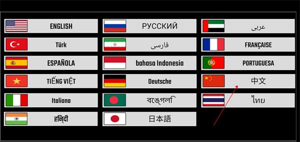 4、最后往下滑,找到“中文”选项点击即可切换中文