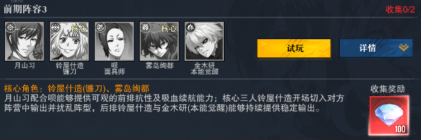 阵容组成:月山习+铃屋什造镰刀+呗面具师+雾岛绚都+金木研本能觉醒