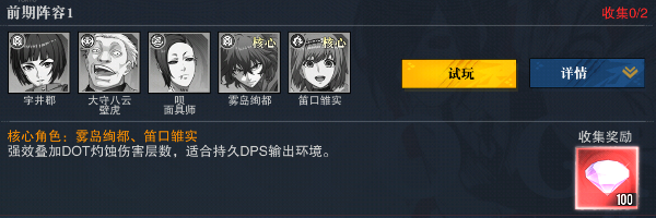 阵容组成:宇井郡+大守八云壁虎+呗面具师+雾岛绚都+笛口雏实