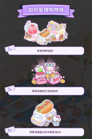 特殊设施不仅能提供额外收益或功能,还能与 Hello Kitty、酷洛米等三丽鸥角色产生互动效果。