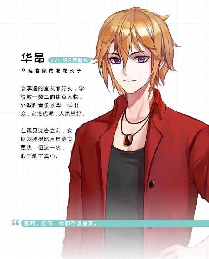 古庆大学在校生,华昂的表妹,同时也是活跃偶像团体的成员。对偶像身份似乎并不感兴趣,性格直率、尖锐又任性,朋友不多。