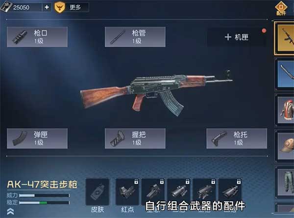 游戏里同一种枪械会有品级的差异,最低级为白板枪,最高级是金枪,无论是基础面板还是附加的词条都会更强,如果看各项参数费劲,直接按游戏的评分系统来分辨就可以,评分高的武器无脑用一般不会出错。枪械本身又可以进行改装,从瞄准镜,枪口再到弹夹,不断可以选配和升级,而金枪加全配件满级,便构成了一把终极的毕业武器。由此可见,游戏里的枪械不多,但在此自定义和升级系统的加持下,变得可玩性十足,需要大家花不少时间去肝。