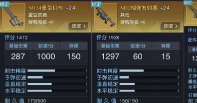 主武器之后是重武器,玩家要到35级解锁专精系统后才能获得,都是金武,分别是M134重机枪,M32榴弹发射器以及B39生化步枪。属于分化玩家定位的职业型武器,重机枪有着很高的火力输出压制效果,对单体比如boss有很好的效果。然后榴弹发射器的弹药是溅射输出,可想而知对群输出更好,最后的生化步枪被玩家称为奶狙,以治疗为主,这就构成了单体爆发,群体爆发,辅助三个方向,适合组队时的合作打法。独狼时候一般就是前两者了。