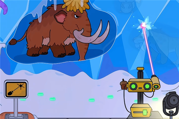 4、例如这里小编拖动激光将冰块融化,将可以看见长毛象以及小企鹅哦;