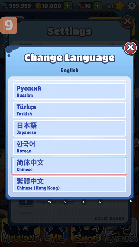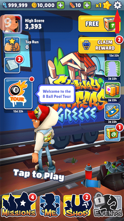 1、打开地铁跑酷国际服破解版游戏,点击右上角的【齿轮】设置图标;