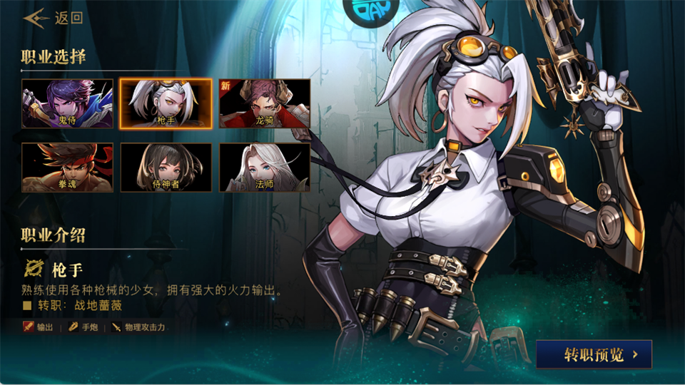 核心定位:枪械火力输出,物理攻击,远程压制型职业。