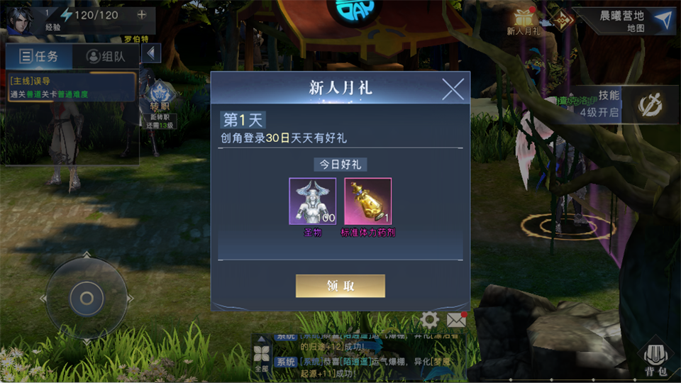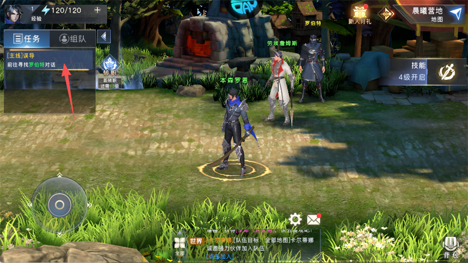 按指引先找罗伯特对话,再挑战兽道-普通难度(1-3级,消耗3点体力),通关解锁基础玩法,快速升级到14级开启转职。