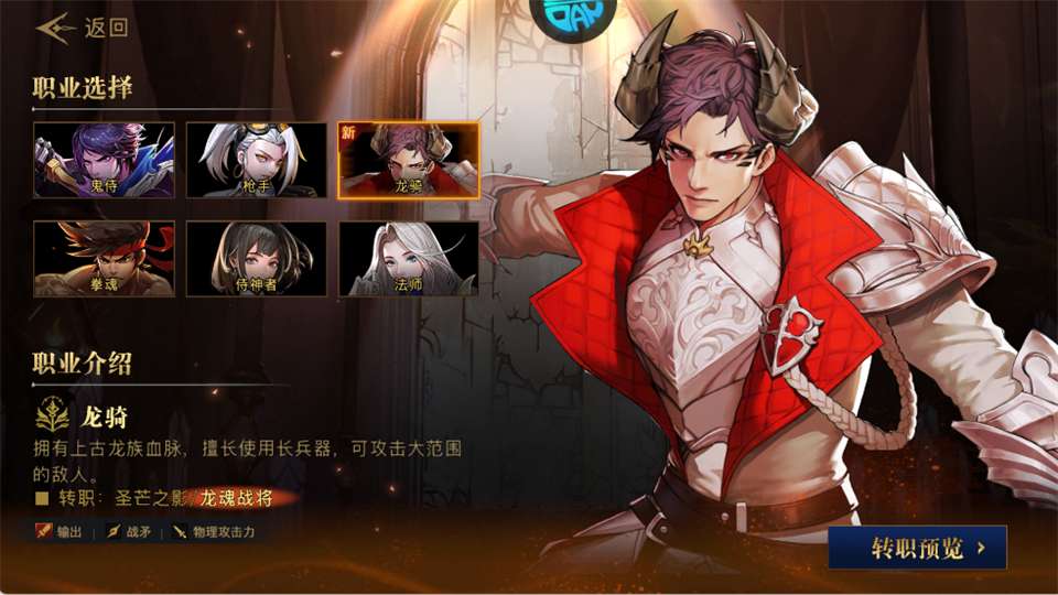 核心定位:上古龙族血脉,长兵器物理输出,范围攻击型职业。