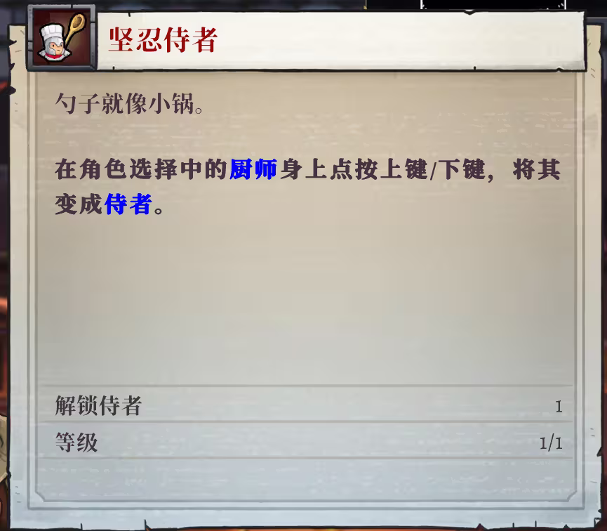 厨师的进阶是坚韧侍者,武器是一袋勺子,特效是弹跳一次,弹跳后的勺子会造成暴击并获得智慧加成。厨师的进阶武器勺子是可以瞄准发射的,无论是攻击到墙体还是怪都会弹射,单看这个武器还是不错的,但是对比厨师原本的平底锅就差太多了,原来可以反弹弹幕,但是这个就什么都没有了,可以说是很弱了。