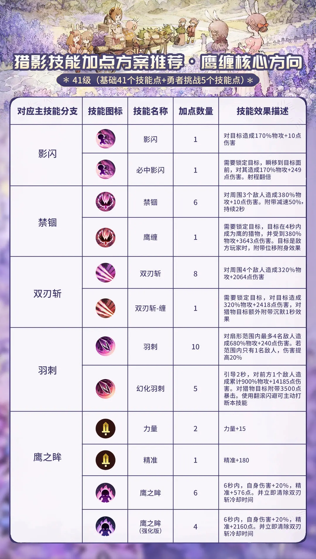 无鹰缠核心的加点方案同样具备很高的爆发伤害,但相比之下更适合PVE玩法,无需担心怪物会躲开技能的情况,如装备裂隙、护送、魔神试炼等。