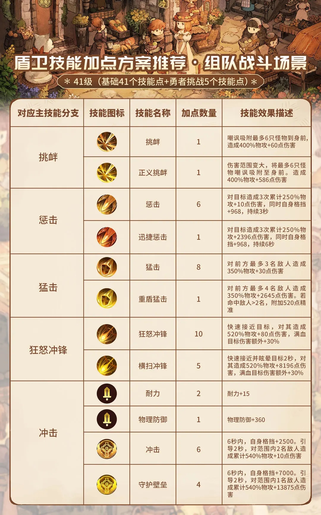 盾卫具有单人战斗输出、组队承伤生存两个分支方向,团队作战中需要尽可能吸引BOSS攻击自身,保护队友免受伤害,在早期的养成过程中首先追求战力评分,其次追求防御、生命属性。