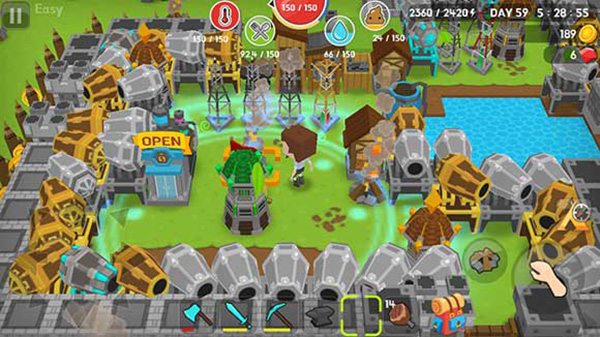 生存大世界中文版是一款卡通风格的开放世界生存游戏,在游戏中,你被困在一座荒芜的岛上,到晚上的时候还会有僵尸出现,你要做的就是在这座岛上建起自己的营地并生存下去。白天的时候,你可以去探索未知区域,找寻食物、水还有收集木材、铁、煤等资源,这些都是生存所必须的物品,然后利用这些收集的资源,可以打造一些道具和建筑,也可以建造农场,种植一些农作物和养一些小动物都是可以的,记得一定要做陷阱,到了晚上的时候僵尸就会来袭,我们要利用好陷阱阻止僵尸,尽可能的在这个小岛上生存下去吧。